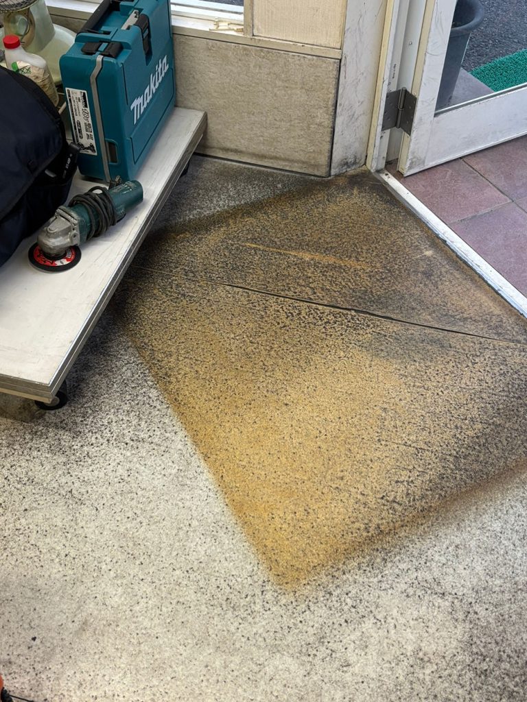 大阪府泉大津市にある電気工事会社様よりご依頼いただき、事務所内の床をポリッシャーで洗浄いたしました。